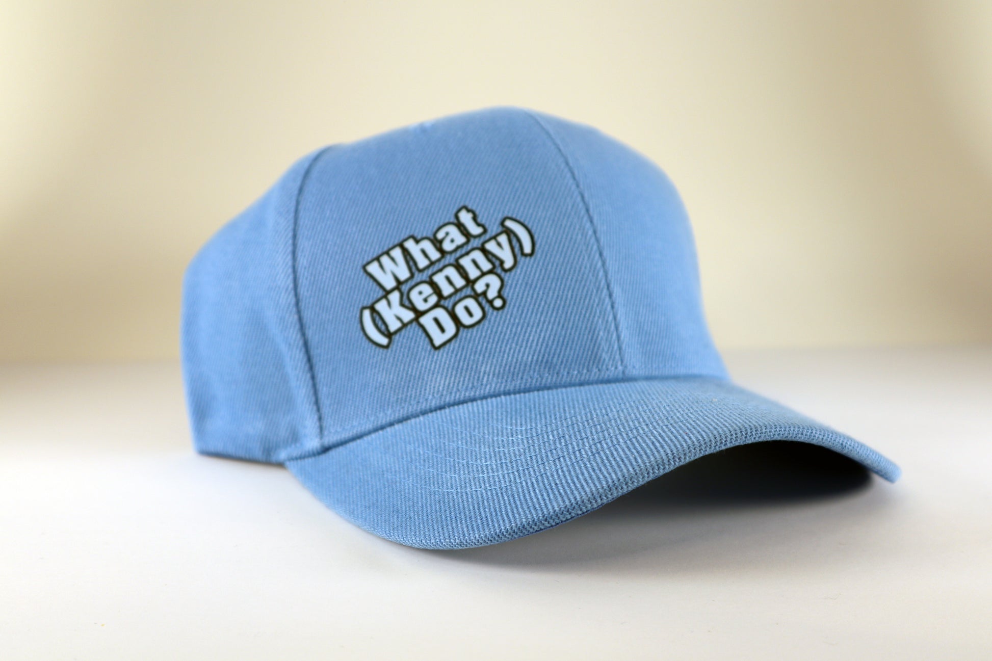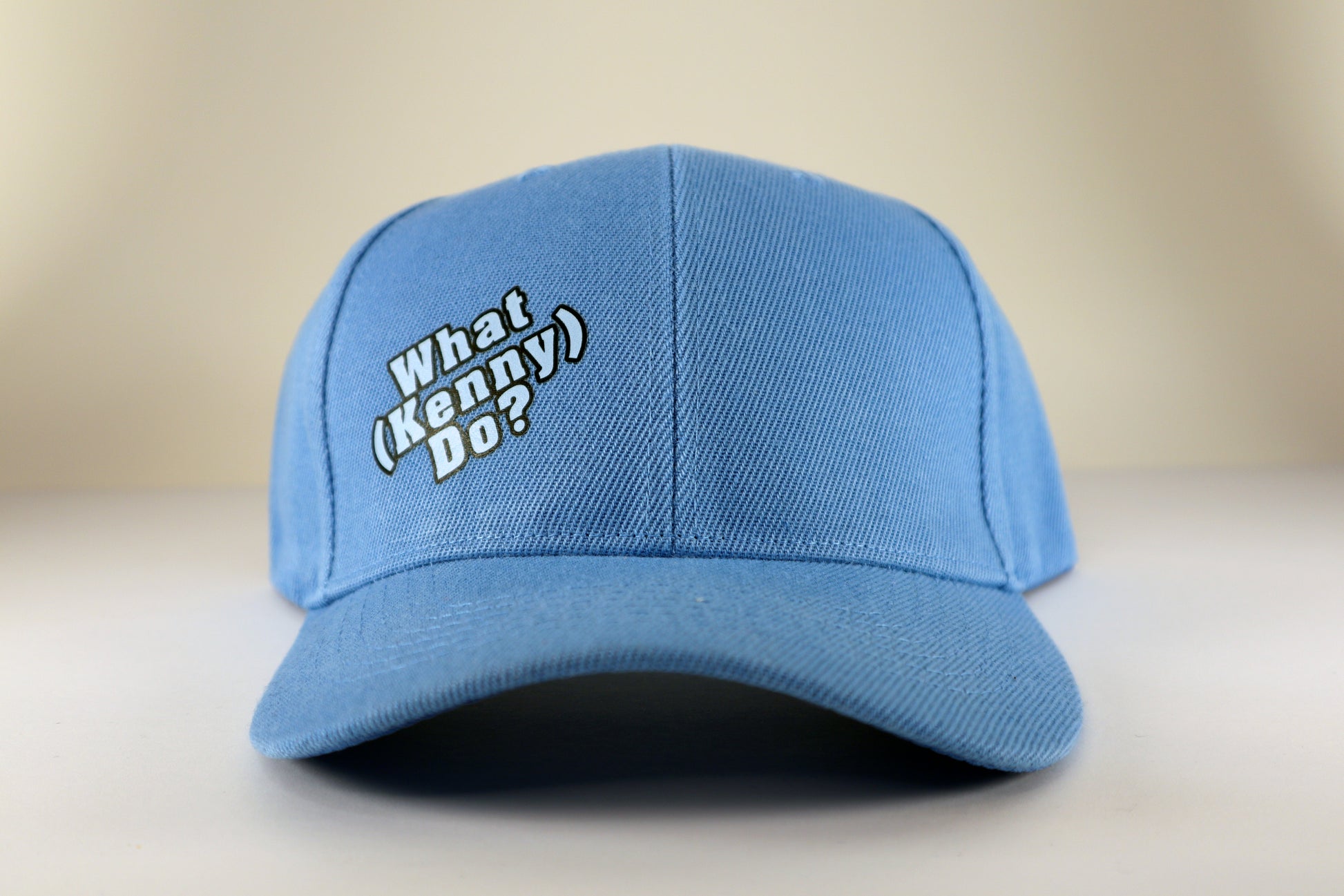 Blue Velcro Adjustable Hat with (WHAT KENNY DO?) logo. From the famous YouTube series. Designed by Kenny G